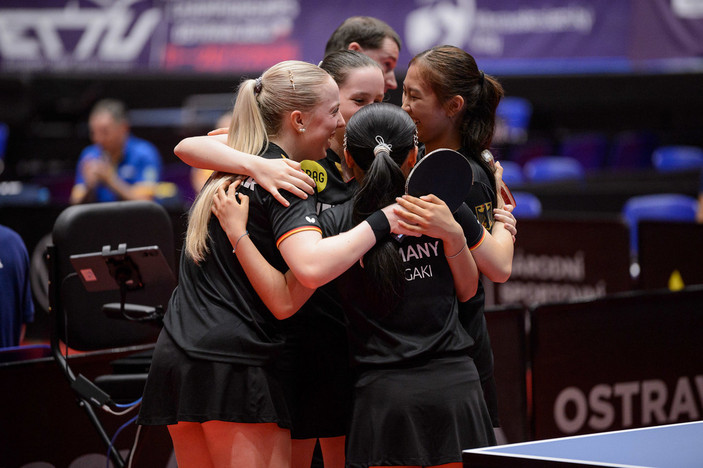 Auch die U19-Mädchen des DTTB waren mit ihrem Abschneiden nicht zufrieden: Der Traum, mindestens eine Medaille zu gewinnen, erfüllte sich für die an Position zwei gesetzte DTTB-Auswahl nicht. „Schuld“ daran war im Viertelfinale ausgerechnet die Ukraine um Veronika Matiunina. Die 18-Jährige vom Zweitliga-Meister TTC Langweid, die am Leistungszentrum des BTTV in München trainiert, hatte mit ihren Einzelsiegen über Mia Griesel und Lorena Morsch wesentlichen Anteil am 3:2-Erfolg ihrer Mannschaft. Die Ukraine gewann anschließend auch das Halbfinale gegen Spanien, unterlag im Endspiel dann aber Frankreich mit 1:3.