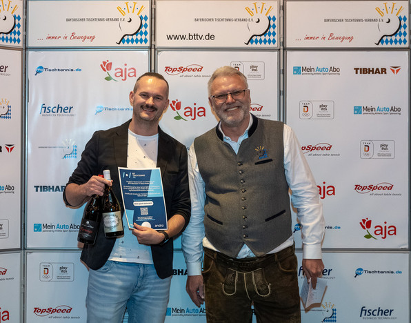 - Gutschein von myTT für fünf Jahre Premiummitgliedschaft im Wert von 75 Euro gestiftet von myTischtennis: 3. Netto-Sieger Jens Volkersdorfer (Bruttowertung 9. Platz)