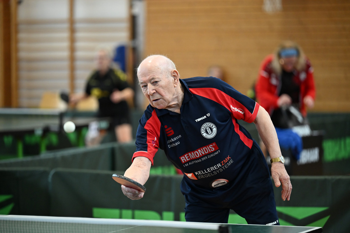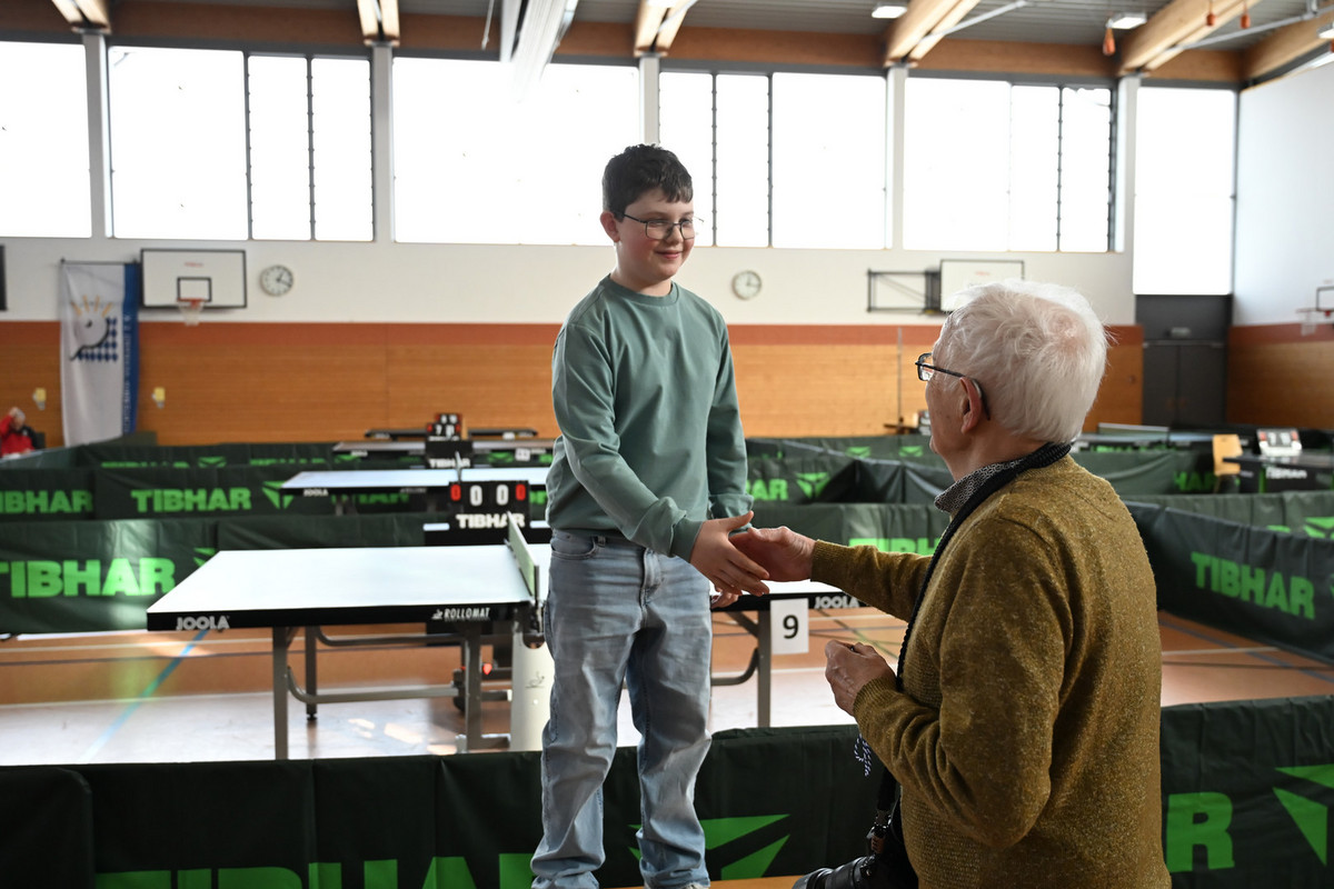Hermann Lautner vom TSV Dachau 65 war mit 90 Jahren der älteste Teilnehmer in Salzweg und wurde in der AK 85 Zweiter. "Das freut mich und war schon sehr überraschend. Ein Gegner hatte fast 300 Punkte mehr als ich. Dass ich da gewonnen habe, war mein Glück. Der zweite Platz tut schon gut, da zehre ich von, das ist so schön. Ich weiß ja nicht, ob ich nächstes Jahr noch dabei bin. Dann bin ich schon 91, fast 92", sagte Lautner, der in Dachau regelmäßig trainiert, in der Mannschaft spielt und in der Vorrunde der Bezirksklasse E kein Spiel verlor. Einer der Gratulanten war DTTB-Präsident Konrad Grillmeyer, der in Salzweg unter anderem die Siegerehrung vornahm.