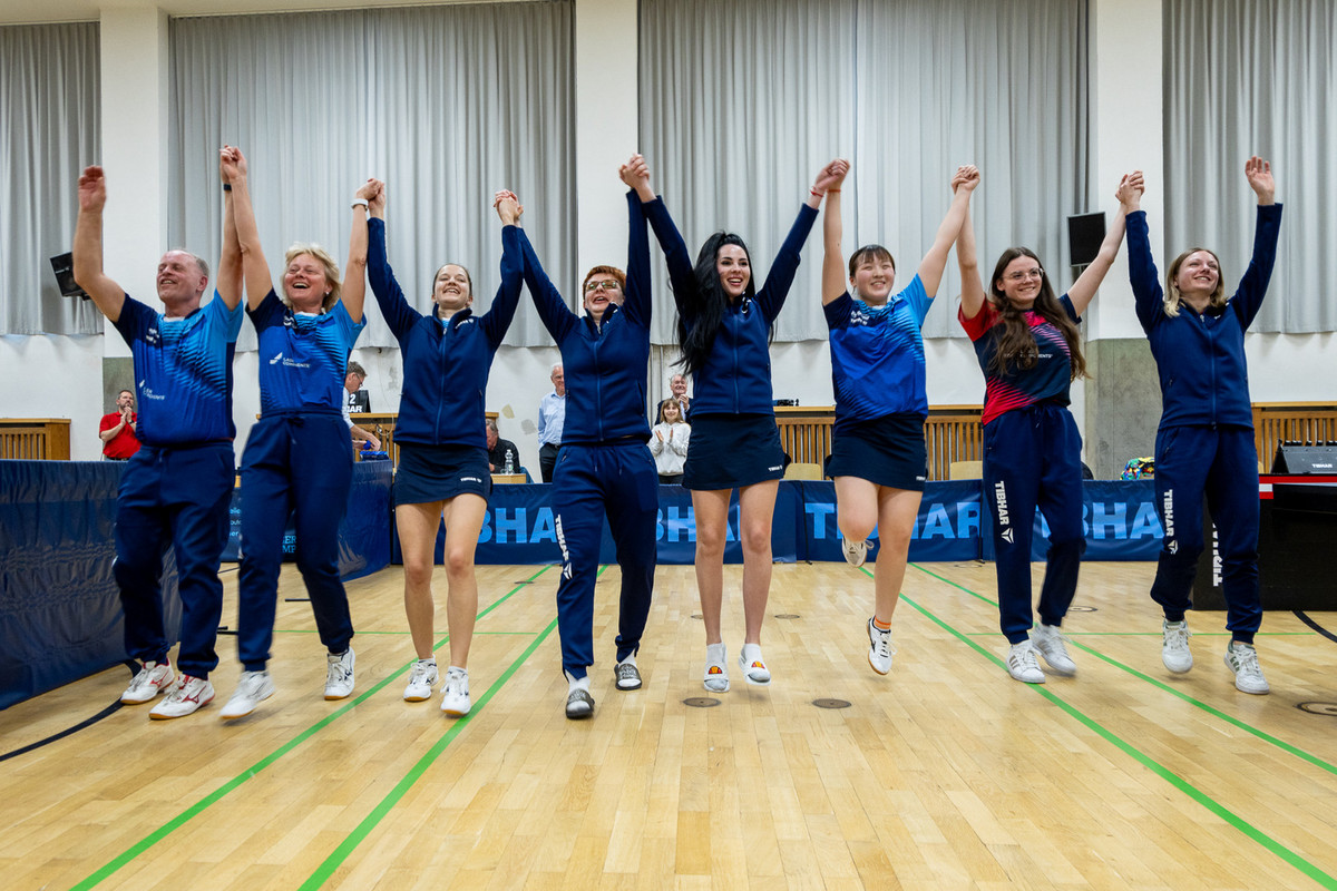 Im Playoff-Halbfinale der 1. Damen-Bundesliga erlebten Chantal Mantz und Franziska Schreiner vom hessichen TSV Langstadt , der sich zur kommenden Saison aus dem Bundesliga-Geschäft verabschiedet, ein bitteres Aus gegen den TSV Dachau (s. eigener Bericht). Der Tag hielt für die beiden aber auch eine äußerst erfreuliche Nachricht bereit: Ihr neuer Klub, der TuS Fürstenfeldbruck, krönte sich zum Meister der 2. Damen-Bundesliga und machte den Aufstieg ins Oberhaus perfekt. Ein Ausrutscher des Langzeit-Spitzenreiters MTV Engelbostel-Schulenburg hatte die Trümpfe am vergangenen Wochenende in die Hände der Oberbayern gelegt – und diese Chance ließ sich das Team des Trainerduos Sandra Peter und Ingo Hodum nicht entgehen. Nach einem ungefährdeten 6:2-Heimsieg im Bayernderby gegen den – wie schon in den vergangenen Spielen – stark ersatzgeschwächten TTC Langweid wurde die Jahnhalle zur Partyzone. Den Löwenanteil am großen Coup trug das Kerntrio Iryna Motsyk, Olena Nalisnikovska und Janine Hanslick. Yi-Ching Chu, Hsiao-Hsin Wang, Farida Badawy, Anna Walter und Milena Burandt bildeten im Saisonverlauf eine starke und breite Ergänzung.